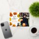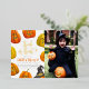 Trick or treat? Add some shine to these birthday invitations with real foil! This cute party invite features a border of hand-painted carved pumpkins and a witch's hat in the bottom right-hand corner. In the middle of the card, in brushed script lettering, it reads "trick or treat?" and "join us if you dare". We have used template text for a kid's Halloween-themed birthday party, but this can be used for any Halloween party, costume party, dinner, gathering, and more! The event details appear in a vintage serif typography and are fully customisable. Add your own custom photo to this design to showcase your kid on their special day! We love photo invitations, as they double up as super-cute keepsakes, to stick on the fridge or add to a photo album! Cards reverse to hand-painted stripes in different shades of orange. To start editing this design, simply click on "Personalise" and modify the text in the template boxes to suit your event and needs. For more advanced customisation, like size, placement, fonts, and colours, scroll to "Click to customise further" to access Zazzle's design tool. These foil-pressed invites can feature gold, rose gold, or silver details - choose the version you like best by clicking through the options! Feel free to message me with any questions, I'll be happy to help! Just please note that I can't modify or interfere with an existing order. Browse my store for more Halloween or fall-themed party invitations.