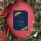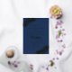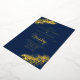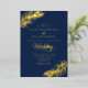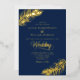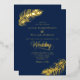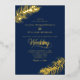 This elegant minimalist tropical wedding design features a touch of luxury with REAL GOLD FOIL for the text and the palm leaves, with a navy blue background.