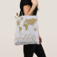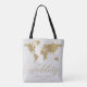 Gold Foil World Map Destination Wedding Monogram Tote Bag