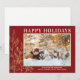 Gold Foliage Burgundy Photo Happy Holiday Card