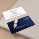 Classic and elegant business card for mobile or public NOTARY AGENT featuring FAKE GOLD Illustration of a FOUNTAIN PEN on the left side with your name and profession in white over navy blue background. Professional and impressive but easy to customise!