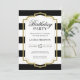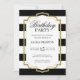 Gold Frame and Black Stripes Glitter Birthday Invitation