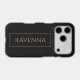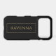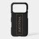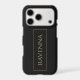 This personalised phone case features a deep black background with a custom name written in a classic serif font in gold colour. A thin gold frame surrounding the name creates a refined and balanced design inspired by luxury style. The black and gold colour palette gives the case a sophisticated and modern look that stands out while remaining elegant. The gold effect is printed colour only and does not contain real metallic shine. Personalise it with any name to create a stylish everyday accessory or a thoughtful gift.