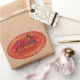 Wildflower honey jar sticker featuring a bumble bee flying over a golden oval frame and a red background with black text to create a nice contrast to the warm colours of honey. Oval (or rectangle) shaped stickers in horizontal format for large honey jars, mason jars and glass containers from your apiary for sale at the farmers' market, grange fair or as gifts to friends. © dotpattern