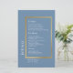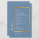 Gold Frame. Typography elegant simple formal dusty blue wedding menu.