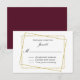 Stylish wedding response card done in white with graphic artwork of a skewed double gold glitter looking frame, with maroon on back. Black text is ready to personalise, for your wedding. Matching products are available.