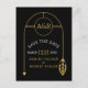 This modern wedding Save the Date postcard is sure to catch the eye, with its alluring gold frame which looks like a fine piece of wire jewellery. The initials of the couple are displayed against a dark backdrop, creating a dramatic effect. The frame is delicately embellished with a leaf detail on one side and an arrow on the other, delivering a sense of sophistication to the design. This exquisite postcard will be sure to make a lasting impression on all your guests.