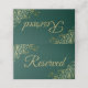These elegant place cards are designed to let your guests know which seats are reserved for family and other special guests. They feature a lush emerald green background with frilly ornate gold faux foil floral accents in the corners, and gold lettering reading "reserved." Perfect for weddings or any other special occasion.