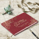 Gold Frills on Lush Marbled Red Elegant Wedding Guest Book