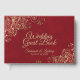 This elegant guest book will serve as a special memento of your wedding day. It features a lush marbled red background with frilly and ornate faux foil gold filigree and chic script lettering. The title reads Wedding Guest Book and there is space for the names of the couple and wedding date.