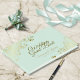 This elegant guest book will serve as a special memento of your wedding day. It features a light green or neo mint coloured background with frilly and ornate faux foil gold filigree and chic script lettering.