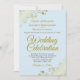 Gold Frills on Powder Blue Elegant QR Code Wedding Invitation