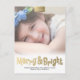 Customise this fun stylish lovely light and crisp simple modern Christmas postcard designed with faux gold text Merry and Bright on white. Please note that the gold is colour print and is not an actual gold foil. Replace the template image with your favourite photo and change all the template information on both sides with your own. This design has a wording: "Wishing you a joyous holiday season and a new year filled with peace and love." but you can change the words with your own. *Photo template credit: © StephaniePetraPhoto