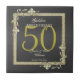 Glamourous and elegant posh 50th Golden Wedding Anniversary ceramic tile with stylish gold gem stone jewels corner decorations and matching coloured glitter border frame printed on a black background. A romantic design for your celebration. All text, font and font colour is fully customisable to meet your requirements. If you would like help to customise your product, would like matching products or even a colour change please contact me through my store and i will be very happy to help you.
