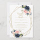 This gold geometric brunch with the bride shower invitation is perfect for a rustic wedding shower. The design features beautiful hand-painted dark blue, blue, navy, pink, blush, gold flowers and green foliage, adorning a geometric frame.