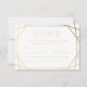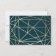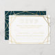 A modern and contemporary winter wedding response card, features a "faux foil" gold geometric pattern over a dark turquoise background. All your details are spelled in a beautiful modern typo.