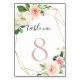 Compliment your classic wedding event with this gold geometric elegant fall flowers wedding table number. The design features pink, white watercolor flowers with green leaves, adorning a gold geometric frame.