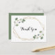 This gold geometric eucalyptus calligraphy thank you postcard is perfect for rustic wedding. The design features hand-drawn botanical green eucalyptus branches and leaves adorning an elegant frame. Customise the back of the postcard, including your names, return address and a thank you message. Or, leave the thank you message template section void to draught a few words on each card after they arrive. These cards can be used for a wedding, bridal shower, or any time you want to say thanks.