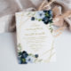 gold geometric floral navy blue wedding invitation