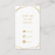 A minimalist white package insert framed with refined gold effect geometric lines features a fun, easy to read "Thank you for your purchase", creating a polished touch for Etsy orders and small shop parcels. The front includes coordinated social media icons and space for handles to encourage follows, tags, and reviews, while the back provides room for shop details or a short product care guide to support post purchase engagement. The gold tone is a printed effect and con sets can be adjusted on request to match preferred platforms without changing the clean layout.