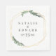 bold modern design featuring a gold geometric frame with beautiful watercolor leafy foliage. This elegant rustic collection is a great addition to a fall or spring wedding and features all the products you will need for your special day - save the dates, invitations, table planners and more.