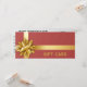 Elegant, noble, simple and glamourous gold gift bow and gold satin ribbon on lush red background. This classy and festive gift certificate is perfect for your small business or to gift friends and family.
