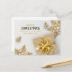 Elegant high quality holiday design featuring glamourous gold glitter snowflakes, gold Christmas tree balls and a gold gift box on a light grey background. This festive seasonal greeting is perfect for your small business or to gift friends and family.
