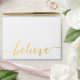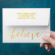 Use this Gold Glam Believe Holiday Printed Envelope to send out the matching holiday cards in our store. Gold Glam Believe | Holiday Photo Cards. Elke Clarke © Printed gold foil effect on a matte surface. Gold and white striped pattern on inside.
