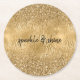 Gold Glam Glitz Zebra Print Faux Glitter Round Paper Coaster
