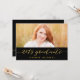 Trendy modern photo card inviting your family and friends to your daughter's graduation party. Simple Printed Faux Gold Foil Handwriting Script Graduation Party Invitation for 2015. Design by Elke Clarke © Visit our shop www.zazzle.com/monogramgallery* for more designs and styles. Add your own photo and text. A simple gold foil typography text overlay (printed photo effect) with the words "2015 Graduate". Replace sample photo with your own. Black and gold colours. Other styles and colours available.
