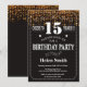Gold Glitter 15th Birthday Invitation. White Typography. Black and White Chalkboard Background. Kids Birthday. Male Men or Women Birthday. Kids Boy or Girl Lady Teen Teenage Bday Invite. 13th 15th 16th 18th 20th 21st 30th 40th 50th 60th 70th 80th 90th 100th. Any Age. For further customisation, please click the "Customise it" button and use our design tool to modify this template.