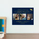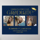 Modern graduation welcome board, featuring a 3 photos, gold glitter, text that reads congratulations to our 'graduate', the graduates name, school or college name and the graduation year. The editable text font styles, sizes and colours can be changed by clicking on the customise further link after personalising.
