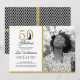 A chic, elegant, 50th birthday photo invitation you can personalise and send out for your fiftieth birthday party celebration. The words "50 and Fabulous" in black and gold glitter are set using modern typography. Simply add your photo and personal details. There's a black and white geometric diamond pattern on the back of the card with gold glitter ribbons. If you need any help or matching products, please contact us through our store.