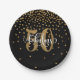 Gold Glitter 50 & Fabulous on Black Birthday Paper Plate