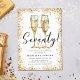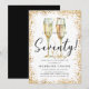 This is an elegant and chic 70th Birthday Party invitation featuring a golden glitter border, a pair of watercolor champagne glasses and a modern script font. This would be perfect for anyone looking to celebrate their special milestone birthday in style.
