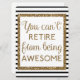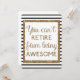 A beautiful gold glitter and black retirement flat card with rounded edges, which has a retirement quote on the front "you can't retire from being awesome". Please note there is not actual glitter on this retirement card, but a design. The back is a solid white with a happy retirement message, but you can easily personalise or delete the message to keep it blank. This would make a wonderful retirement card or an addition to a retirement party for people to write their own wishes on the back.
