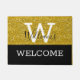Gold Glitter And Black Monogram Name Wedding Doormat