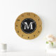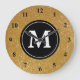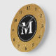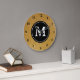 Gold glitter and black monogram wall clock. Sparkly monogrammed design. Stylish home decor. Glittery decorations.
