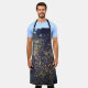 Gold glitter and glittering blue stars on black ba apron