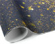 Gold glitter and glittering blue stars on black ba wrapping paper