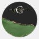 Gold Glitter and Green Agate Monogram Classic Round Sticker