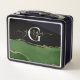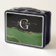 Gold Glitter and Green Agate Monogram Metal Lunch Box