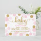 Gold Glitter and Pink Scattered Dots Baby Shower Invitation