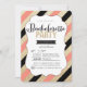 Gold Glitter and Coral Stripes Bachelorette Party Invitation