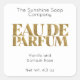A white label for perfume bottles featuring the words "Eau de Parfum" in gold glitter and space for your company name, product scent, and product size.