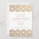 The perfect invitation for a luxe and elegant art deco rehearsal dinner, this invitation design features a pattern of faux glittery gold art deco geometric fans and chic type with a matching patterned backer.