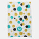 Gold Glitter, Black & Blue Circles Pattern Tea Towel