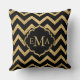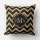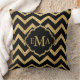 Gold Glitter Black Chevron Zigzag Pattern Monogram Cushion
