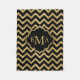 Gold Glitter Black Chevron Zigzag Pattern Monogram Fleece Blanket