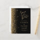 This elegant modern save the date postcard features a gold faux glitter border. Easily customise the gold-coloured text on a black background. On the reverse side, edit the customisable return address and enter your wedding website URL to generate a QR code your guests can scan to learn more about your upcoming event.